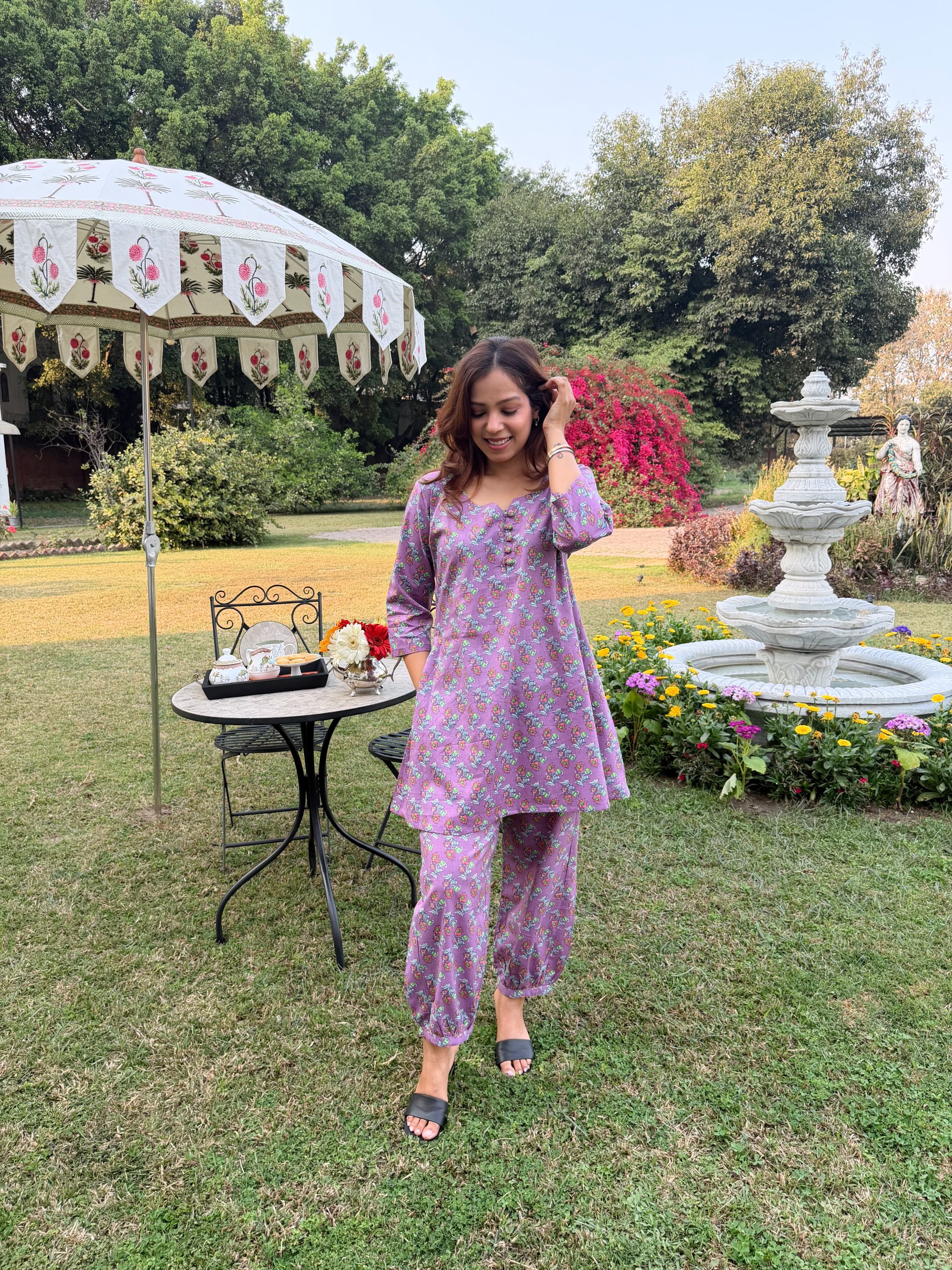 The A-line kurta offers a flattering and relaxed fit, plus it is designed with feeding-friendly buttons, making it an ideal option for new moms, offering both convenience and style. Paired with trendy Afghani pants, it adds a stylish flair to your loungewear. And the best part? The kurta even features pockets, which adds ease to your daily needs.