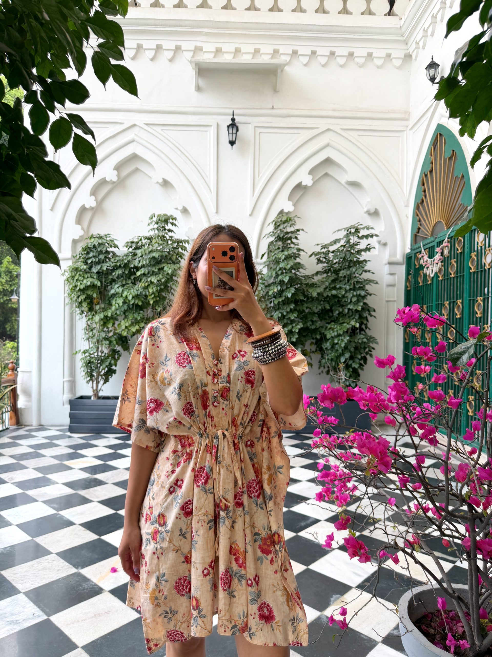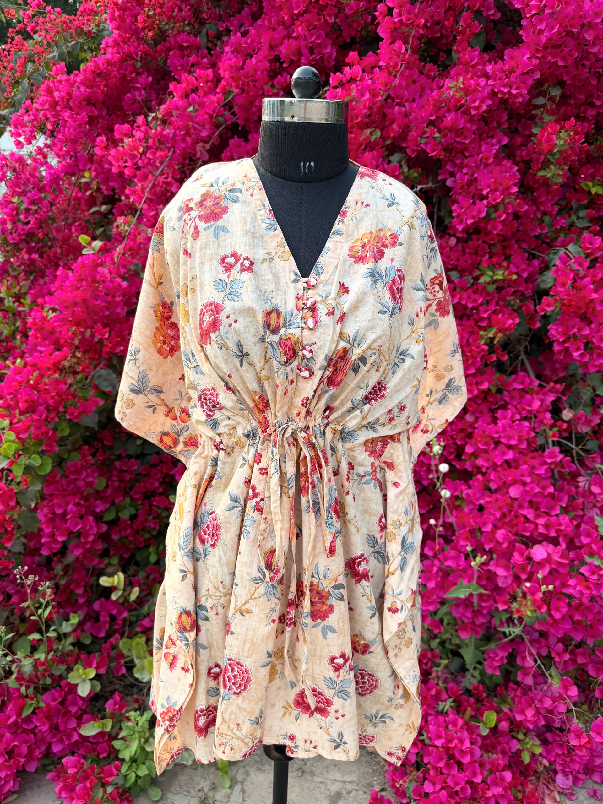 Keeping in mind the needs of modern mothers, we’ve thoughtfully incorporated feeding-friendly buttons into the design. These buttons allow for easy nursing access, making this floral print kaftan not only stylish but also practical for new moms.